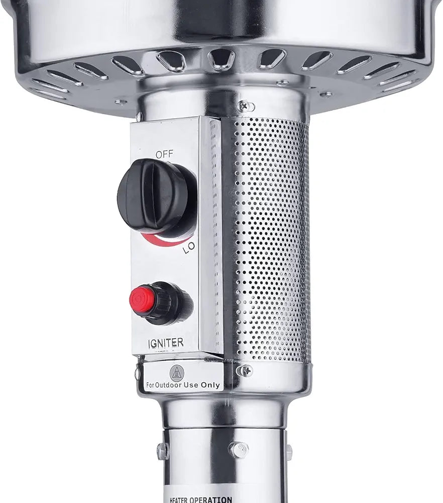 This Mushroom-Style Outdoor Patio Heater delivers powerful, wide-area warmth with a 48,000 BTU output, effectively heating a radius up to 15 feet—ideal for patios, gardens, balconies, and commercial spaces like cafes and restaurants.