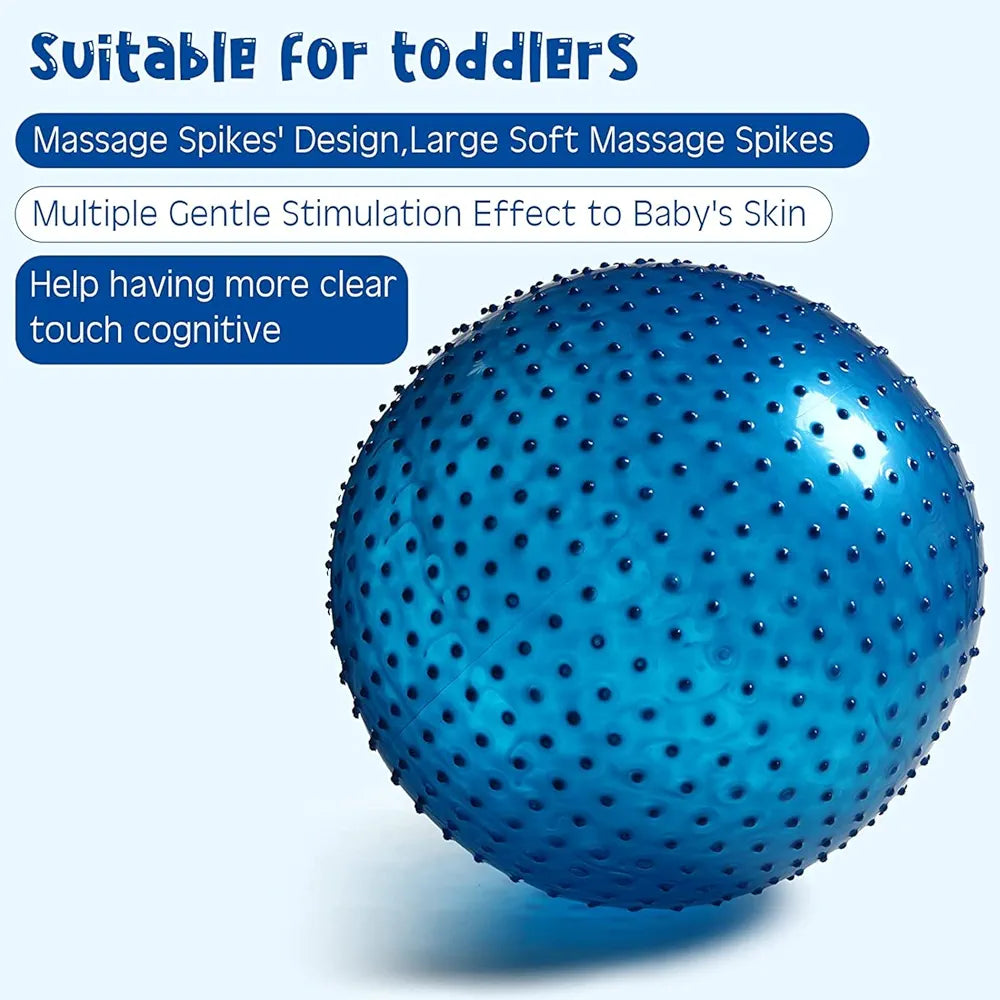 The 85cm size is perfect for taller individuals (approx. 5'9" to 6'8") and suits a wide range of applications: core workouts, yoga, Pilates, pregnancy exercises, birthing balls, physical therapy, and sensory play. Its textured surface features massaging spikes that improve grip, stimulate touch, and can aid in sensory integration for users with ADHD, autism, or stress. Included is a dual-action pump for fast, effortless inflation.